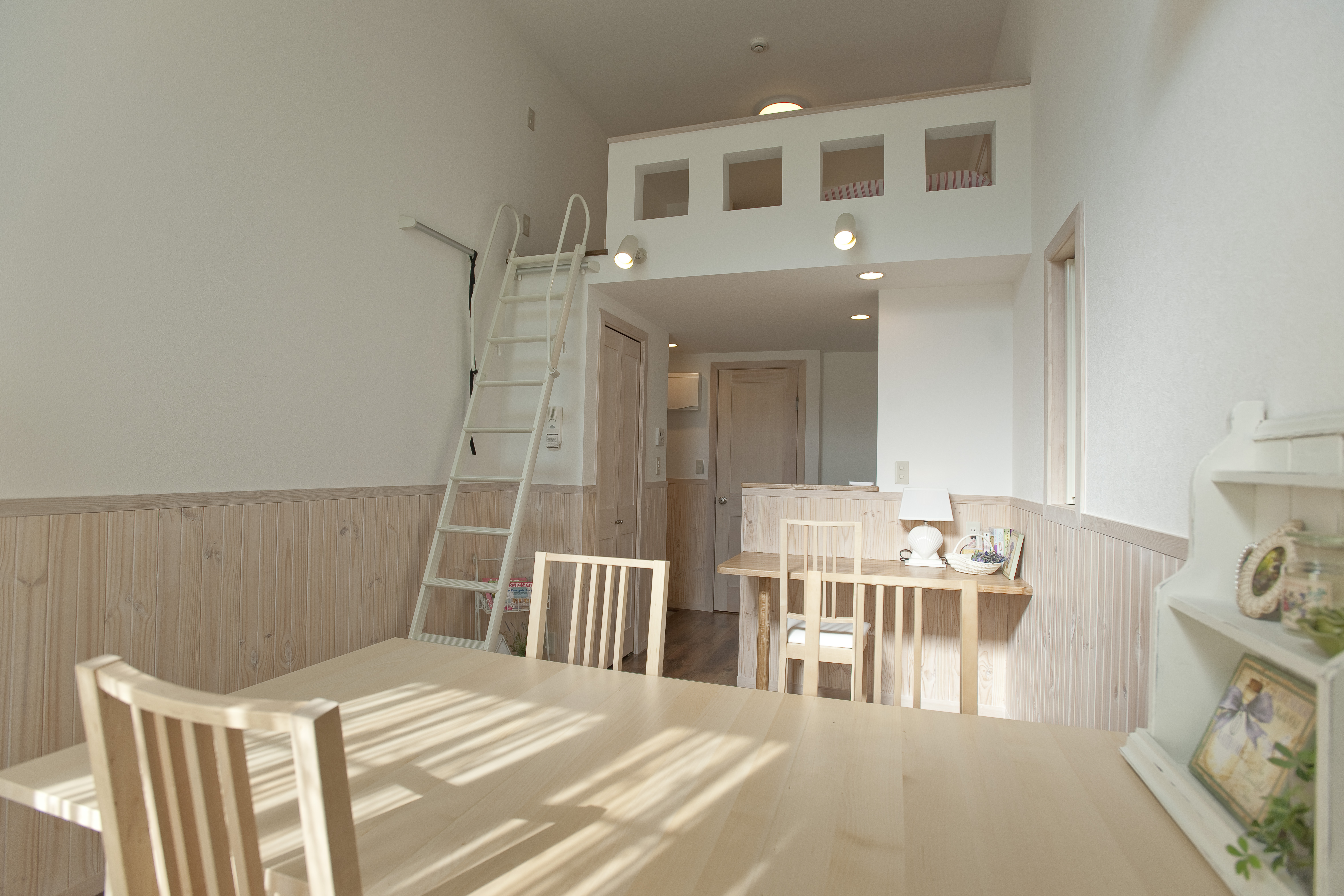 左写真と今回新しくなった固定型ロフト階段は部屋を広く見せたい方に