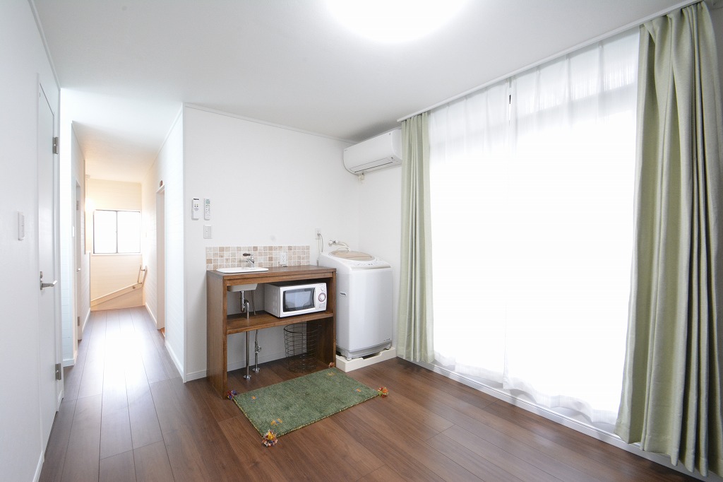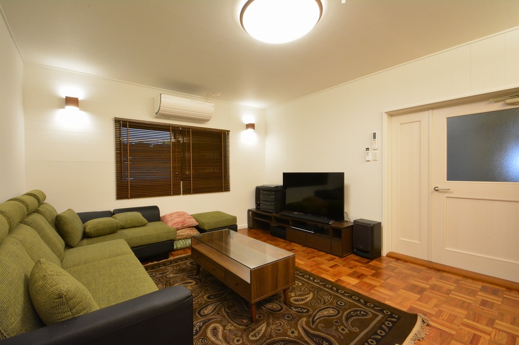 共用のリビングは、板貼りの重厚な内装を白を基調とした明るい部屋となりました。