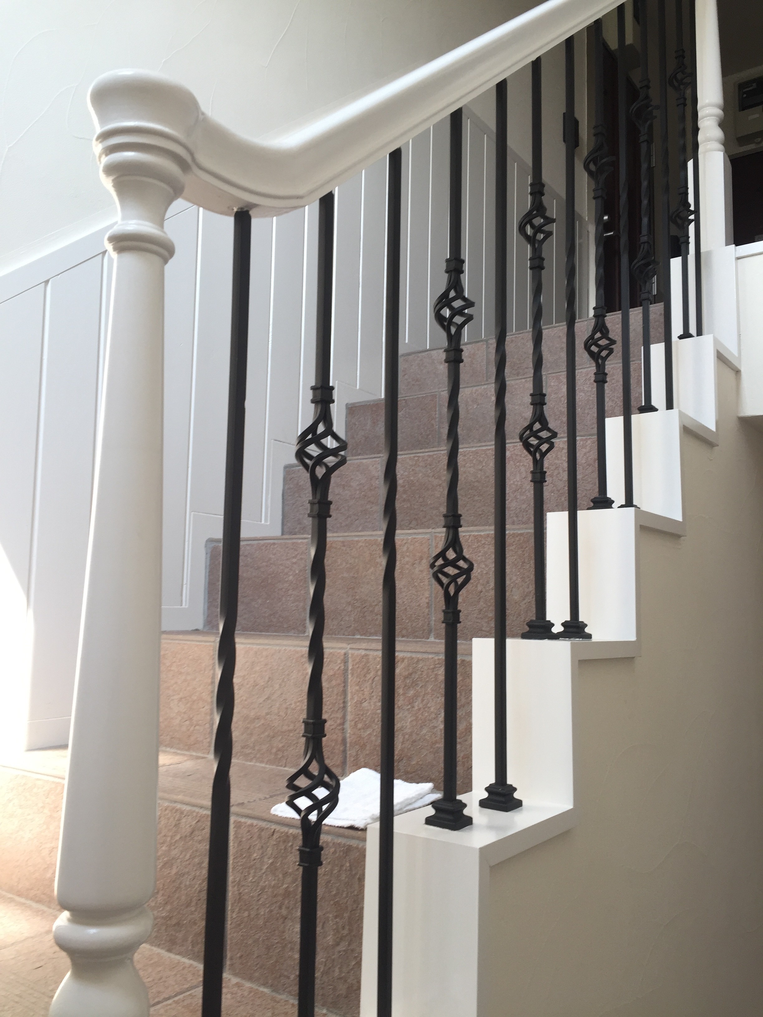 <共用階段> 階段手摺は通常の仕様を変え、エレガントなアイアン手摺に!