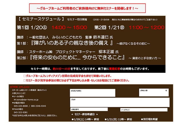 セミナーは完全予約制になりますので、定員になり次第締め切らせて いただきます。