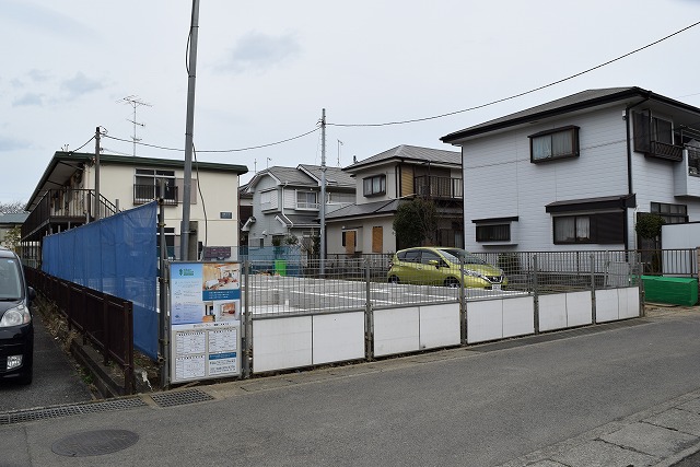 現在、奥にアパートが建つ前面の駐車場に建てています。周辺には古いアパートが多く。