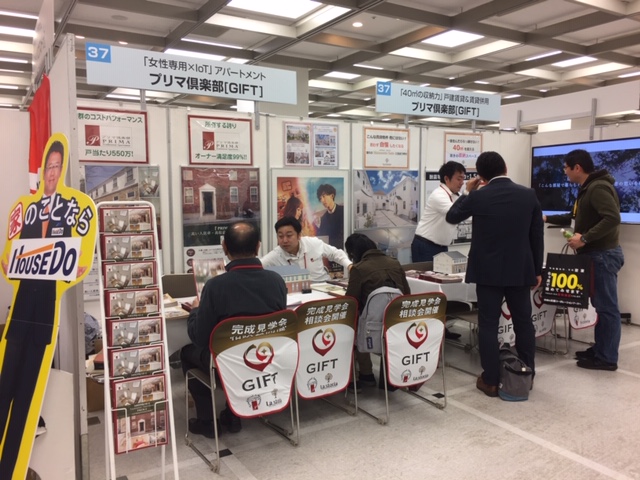 2019宇年4月13日に開催された『賃貸経営&相続対策フェアー』にGIFT≒プリマ倶楽部がブース参加しました。フランチャイジーの当社も私が参加しました。来場者は、昨年と同じくらいの感があり、活気のある会場です。プリマ倶楽部の今年の目玉は、3月1日全国封切りの映画『九月の恋と出会うまで』に飯能のプリマヴィラージュが映画の舞台に使われたこと。主演の高橋一生、川口春奈が3棟建つプリマのA棟とB棟の其々2階の向かい合う部屋に住むといったシチュエーションの恋愛小説が原作です。また商品としてい、戸建て賃貸建物『La Storia』の紹介コーナーです。2022年からの生産緑地指定解除の対策として、農家さん向けのご提案商品になりますので、是非ご相談板ただければ幸いです。