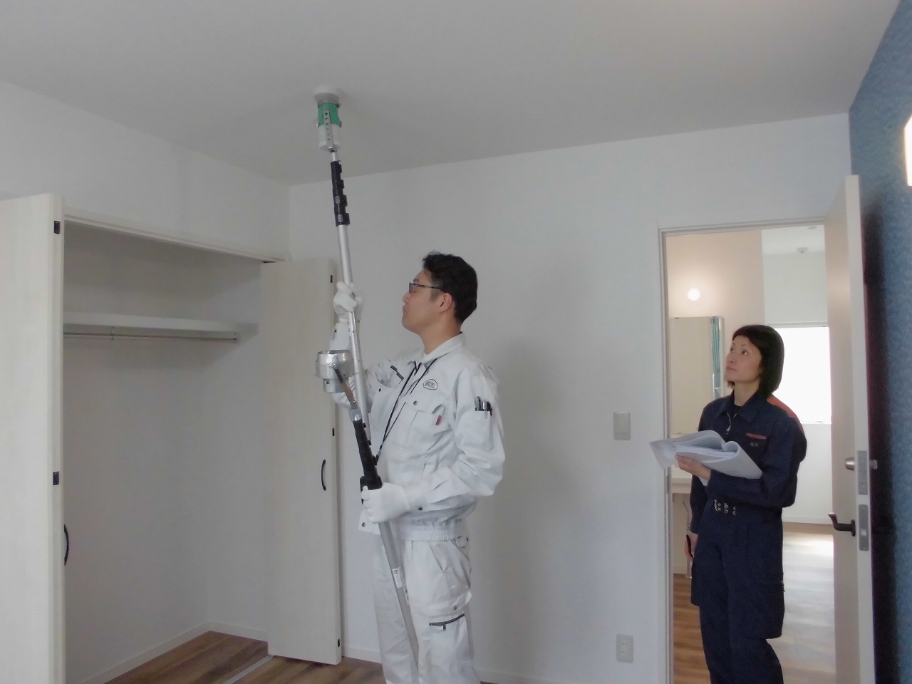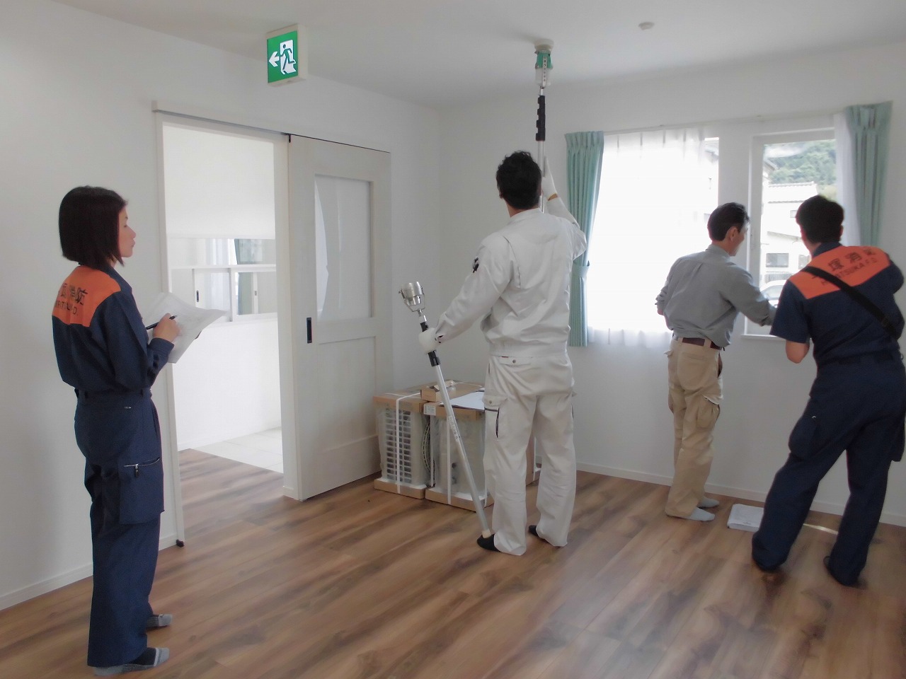 消防局の担当官が防災機器の検査に見えました。障がい者グループホームには、防災対策として、スプリンクラーと自動火災通報装置が
