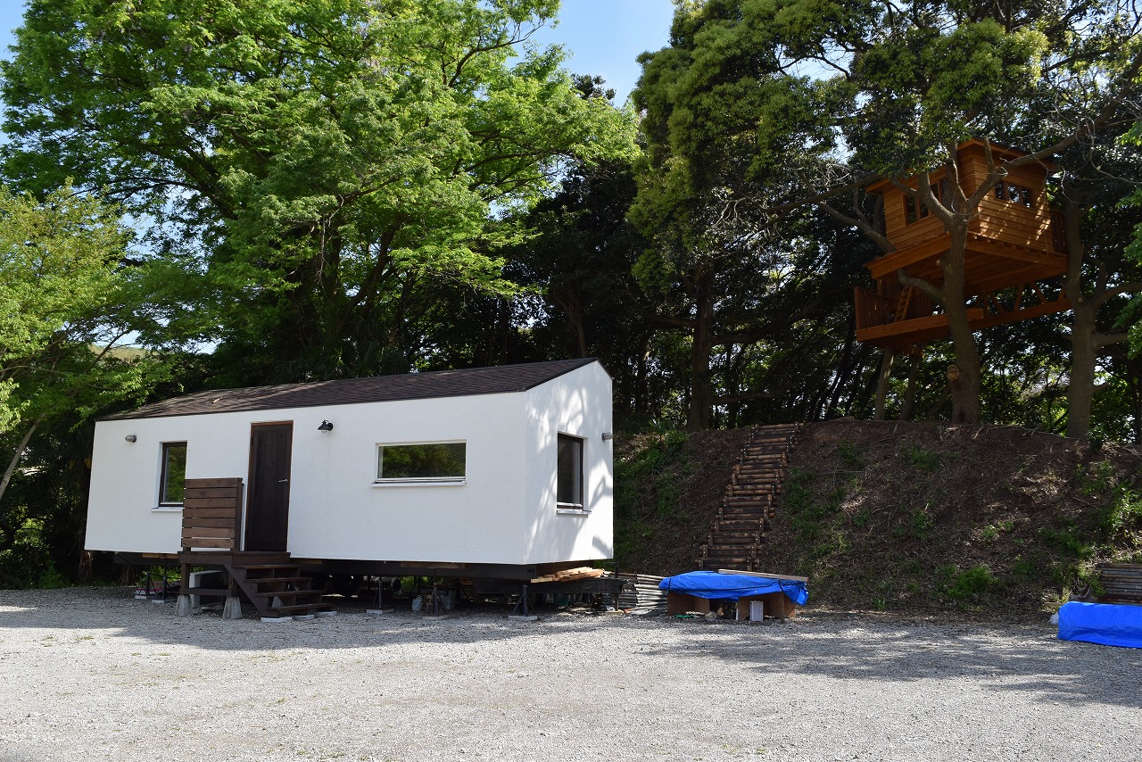 皆様こんにちは、当社の葉山本社隣の駐車場(グランピイング施設の予定地)の奥に、白い建物が置かれています。