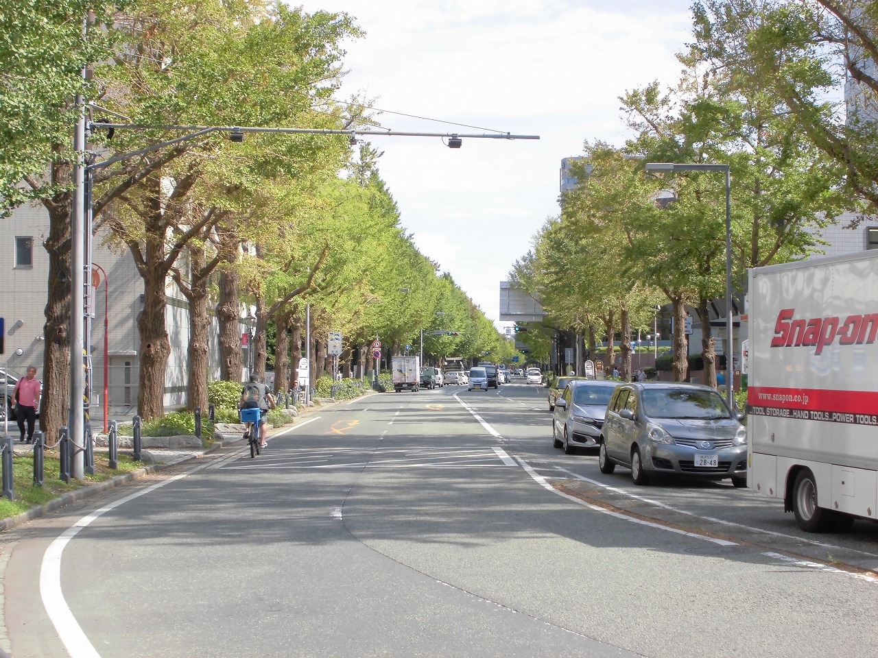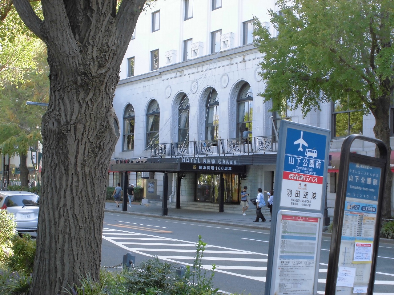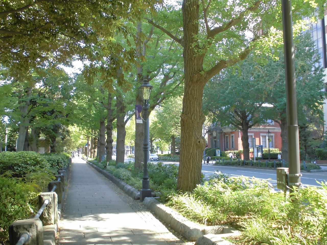 先日の台風15号の直撃を受け、山下公園にも潮が打ちあがると共に強風で海水が巻き上がりました。イチョウ並木の葉も