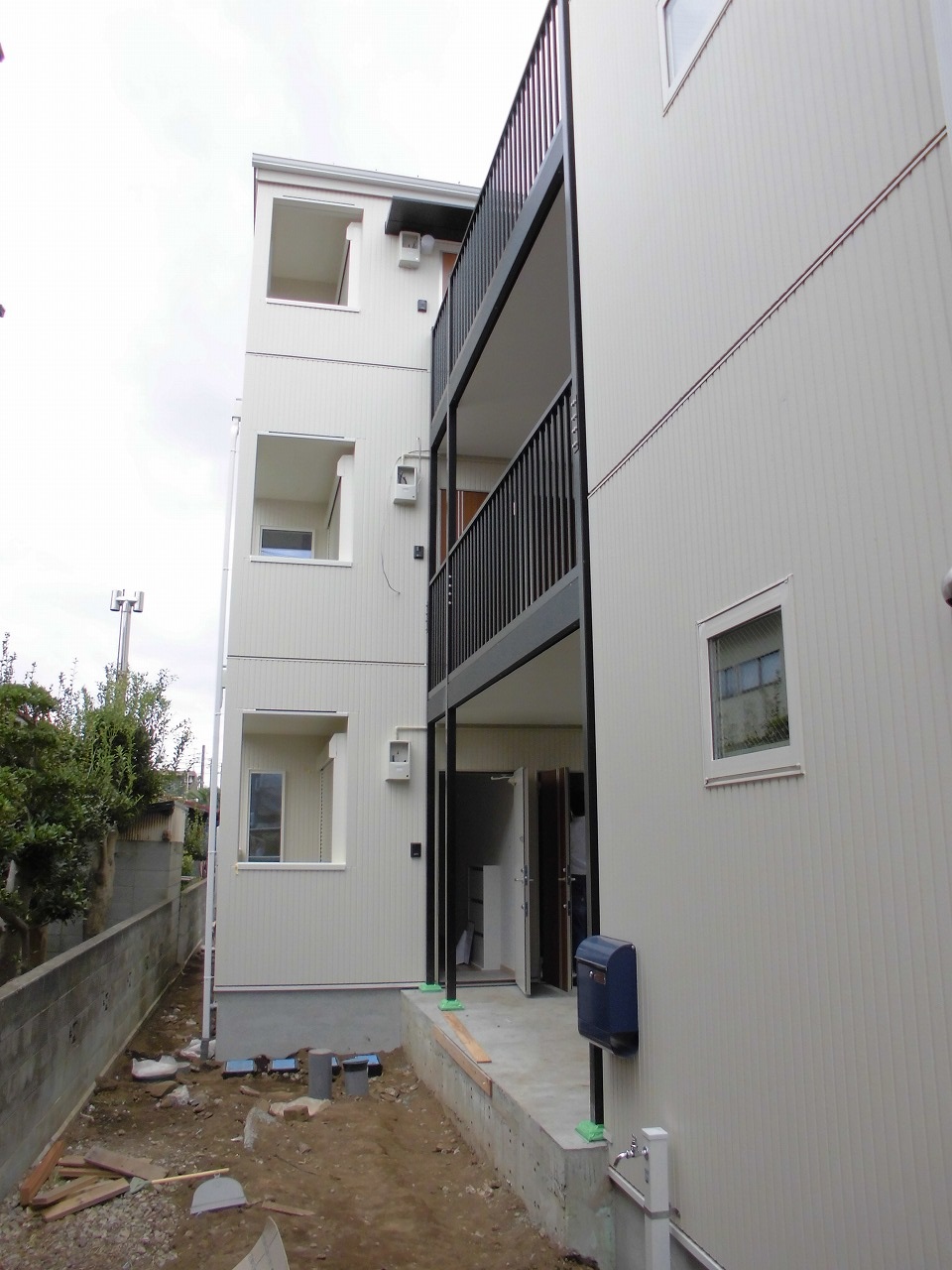 こちらの現場は、初めて3階建ての建物です。10月中旬にお引渡しの予定です。