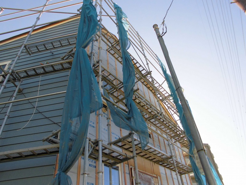 グループホームの台風通過後の状況確認です。資材などが強い風で飛ばされ周辺被害に繋がらない様に施工管理部の大切