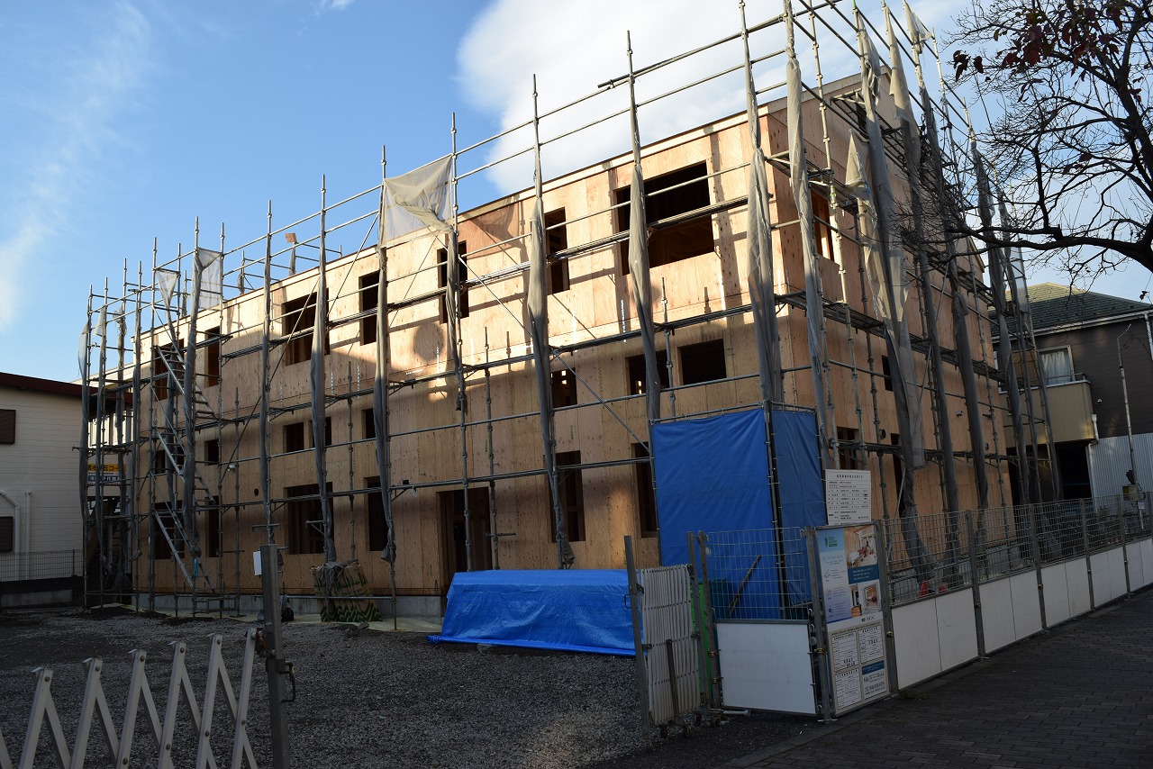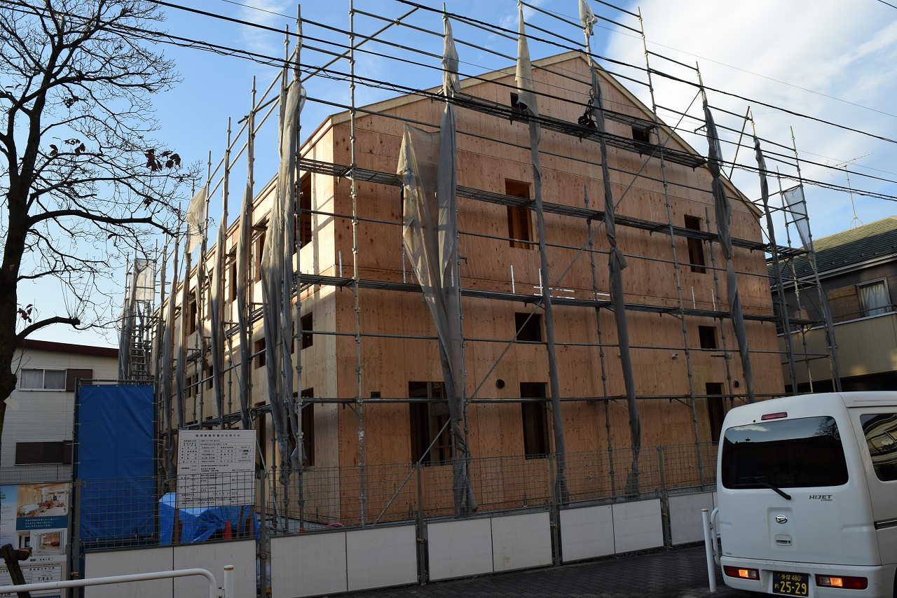 府中市内、京王線の多磨霊園駅から3分の場所で、12世帯のプリマが上棟しました。