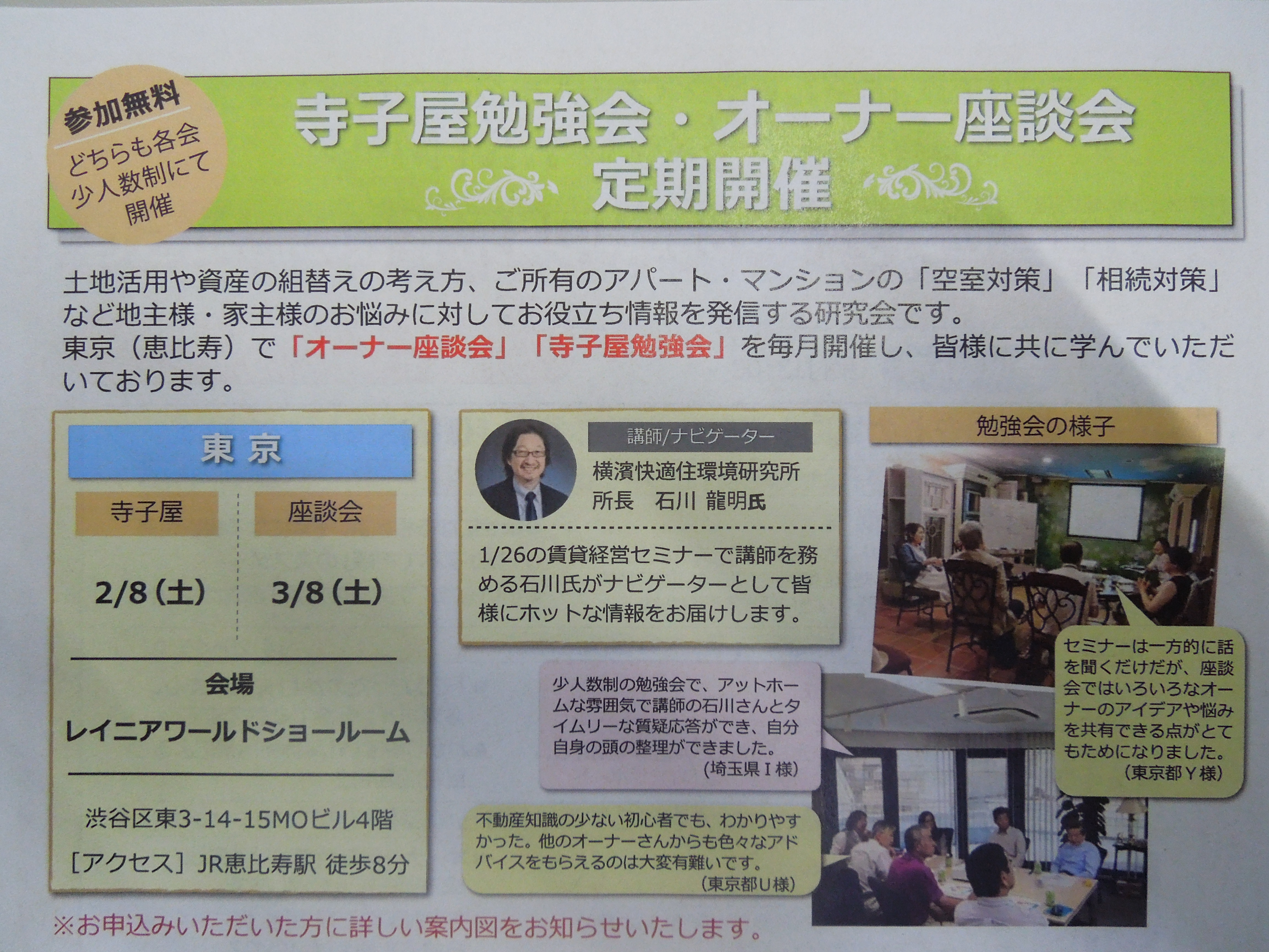 オーナー様勉強会を開催致します!!今回から場所はえ・び・す!になります!